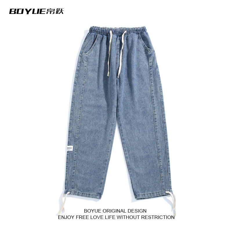 BOYUE帛跃秋季宽松潮流复古裤脚抽绳牛仔裤港风工装直筒休闲裤男热门设计联盟服务商