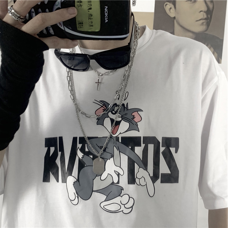 8651# 复古童趣动画卡通字母短袖T恤男女款(牛奶丝180克双磨)热门设计联盟服务商