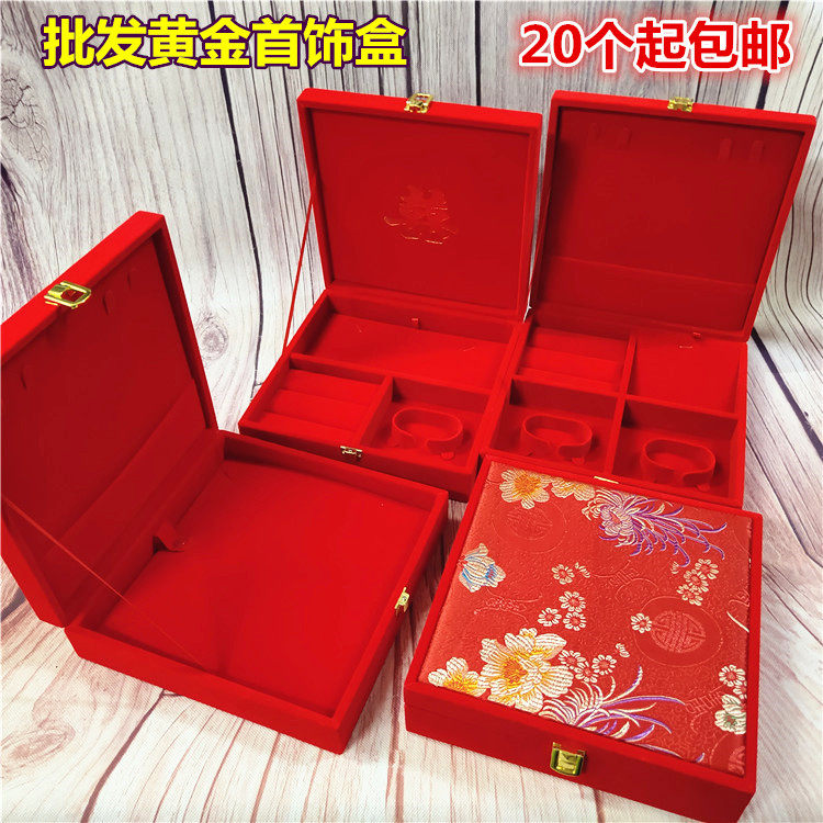 黄金首饰盒红绒龙锦布手镯多件套装礼品包装收纳盒结婚庆新娘嫁妆热门设计联盟服务商