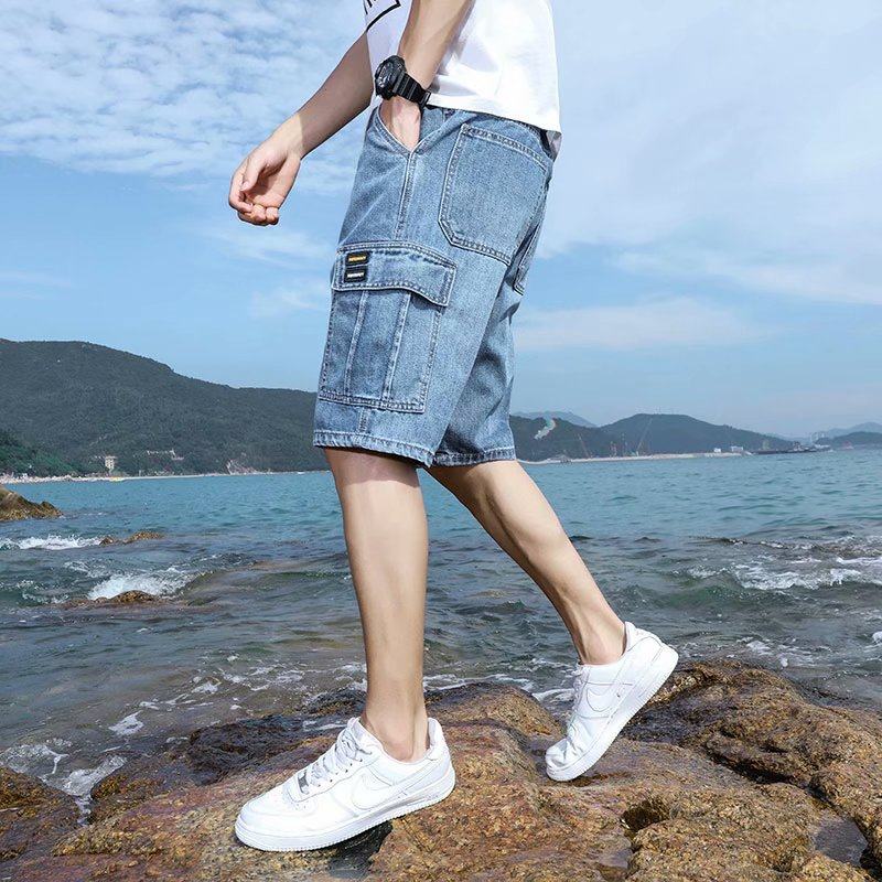 港风牛仔裤男新款宽松五分潮牌短裤子夏季潮流薄复古个性工装中腰热门设计联盟服务商