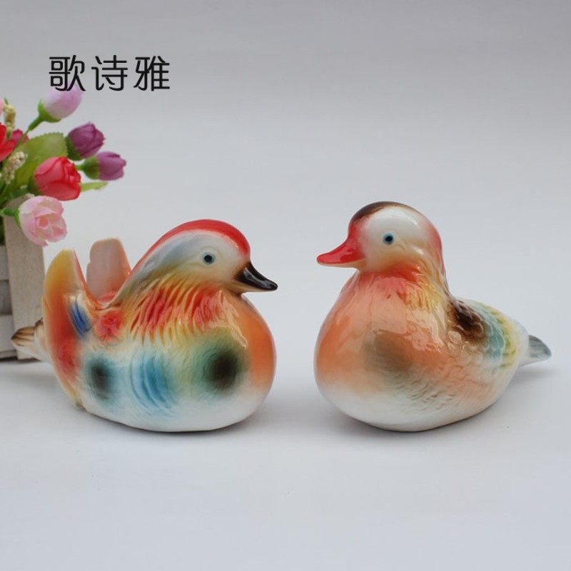 床头装饰品陶瓷小鸳鸯摆件一对婚房姻缘风水卧室爱情结婚礼物热门设计联盟服务商