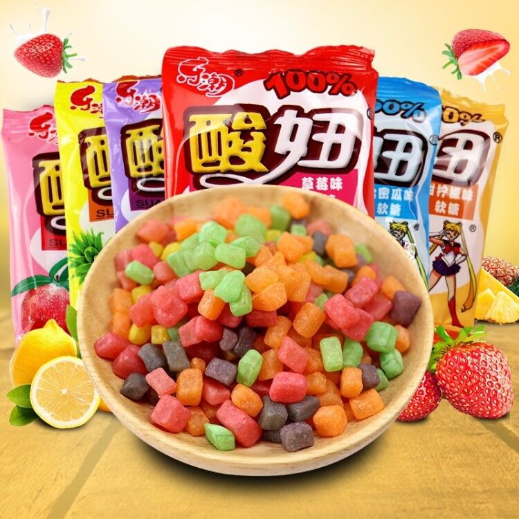 乐潮酸妞综合果味软糖qq糖童年怀旧零食小吃网红水果糖喜糖帖批热门设计联盟服务商