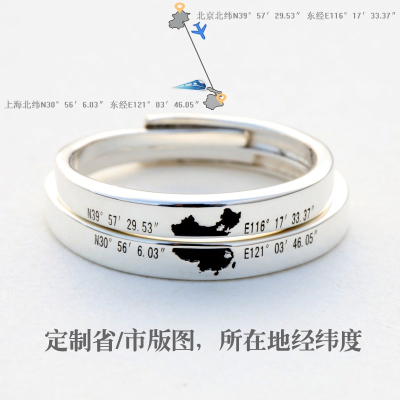 定制地图距离异地恋对戒原创设计经纬度925情侣戒指女男二合一对热门设计联盟服务商