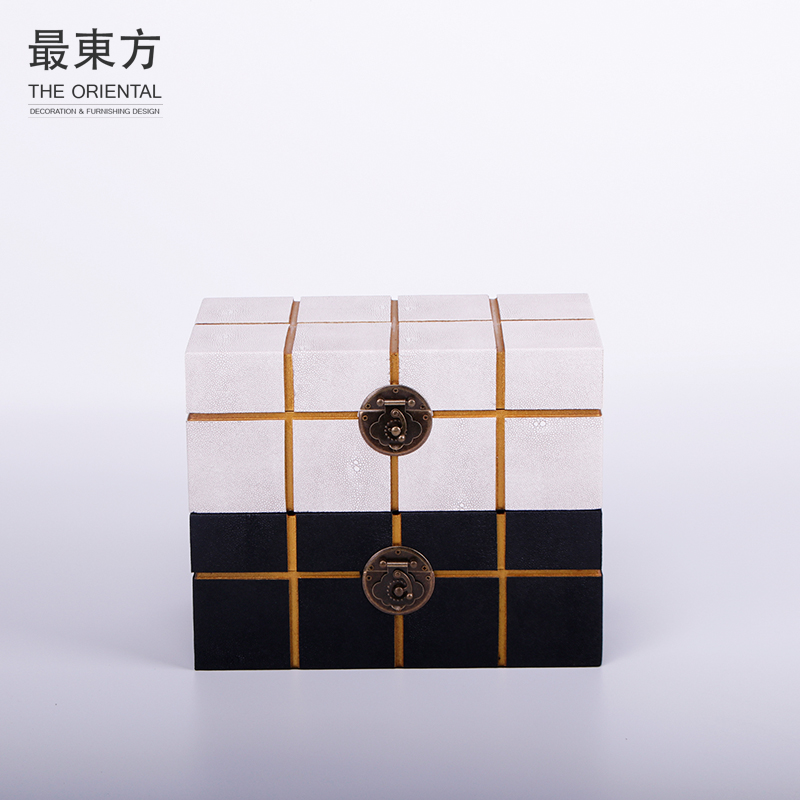 新中式方格首饰盒储物盒摆件软装样板房售楼处玄关博古架装饰盒热门设计联盟服务商