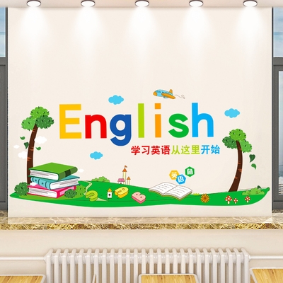 英语教室装饰墙贴画培训班辅导班级文化布置小学教育机构墙面贴纸热门设计联盟服务商
