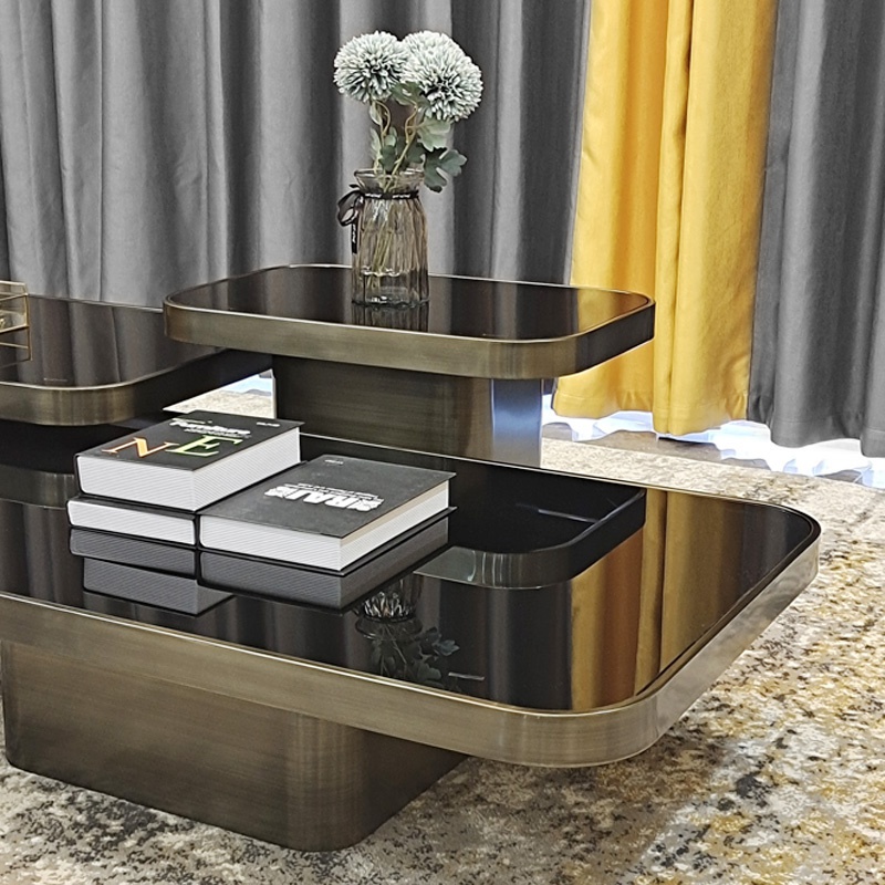 古铜造旧茶几后现代设计师样板房茶桌别墅家用轻奢小户型茶几组合热门设计联盟服务商