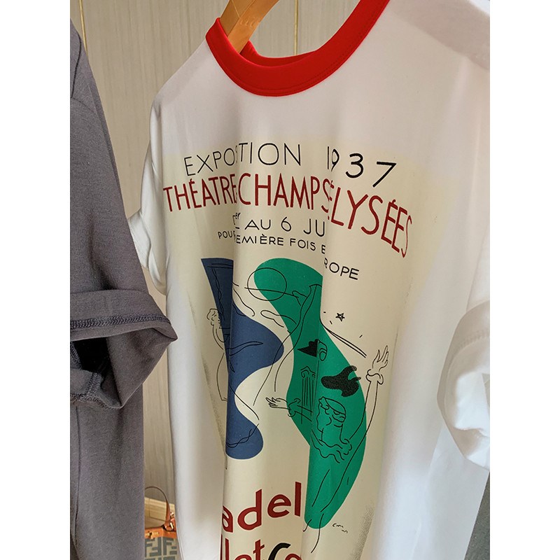 短袖t恤女夏季2021新款韩版ins潮复古海报涂鸦撞色宽松百搭上衣服热门设计联盟服务商