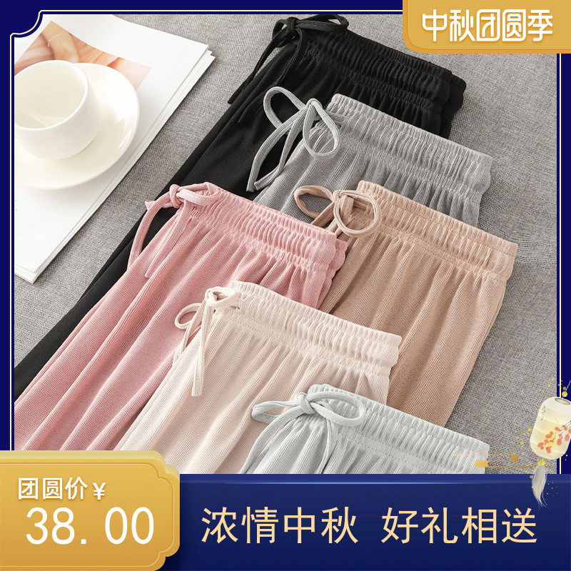 夏季新款其他通勤裤女韩版九分高腰显瘦垂感针织宽松直筒休闲裤子热门设计联盟服务商