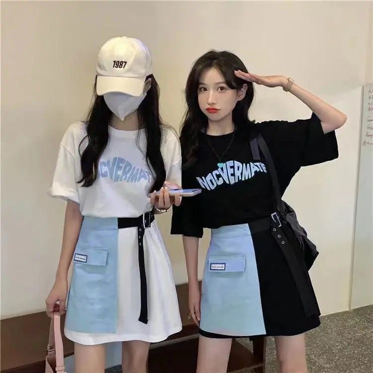 夏季中长款短袖T恤裙套装女设计感闺蜜炸街ins风两件套时尚上衣潮热门设计联盟服务商