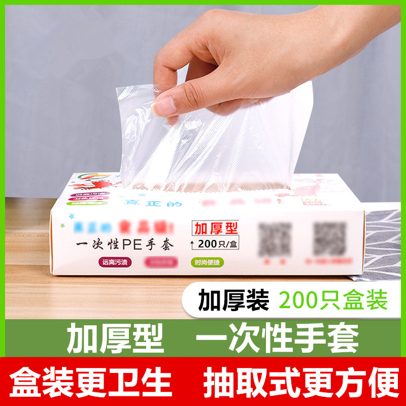 200只抽取式一次性手套食品餐饮塑料薄膜家用透明加厚级耐用盒装热门设计联盟服务商