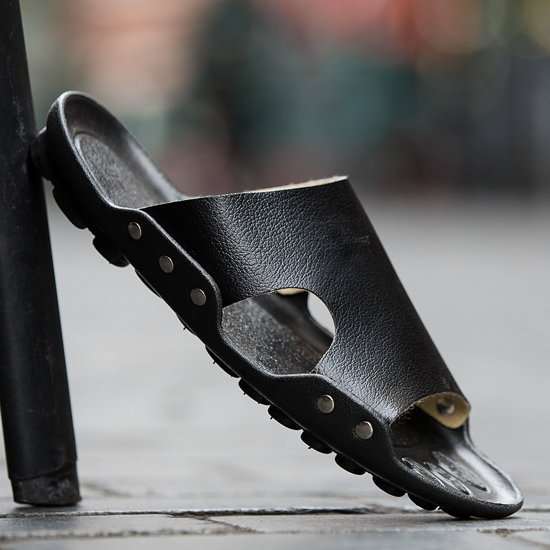 凉拖鞋男潮男室外穿防滑耐磨男士皮革拖鞋个性休闲沙滩一字拖热门设计联盟服务商