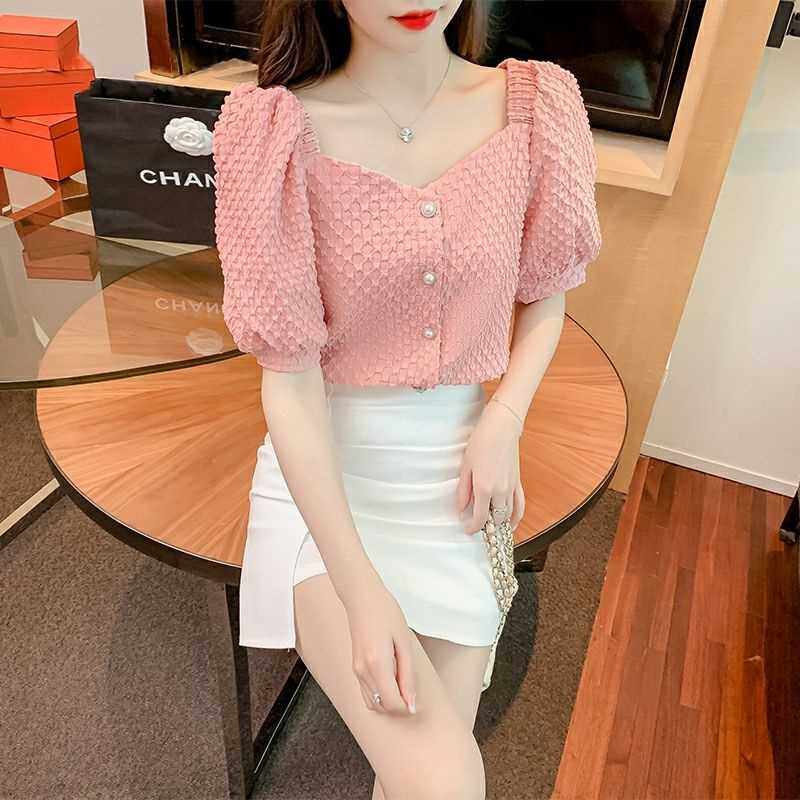 方领复古雪纺衬衫女装夏装2022年新款短袖上衣时尚设计感小众热门设计联盟服务商