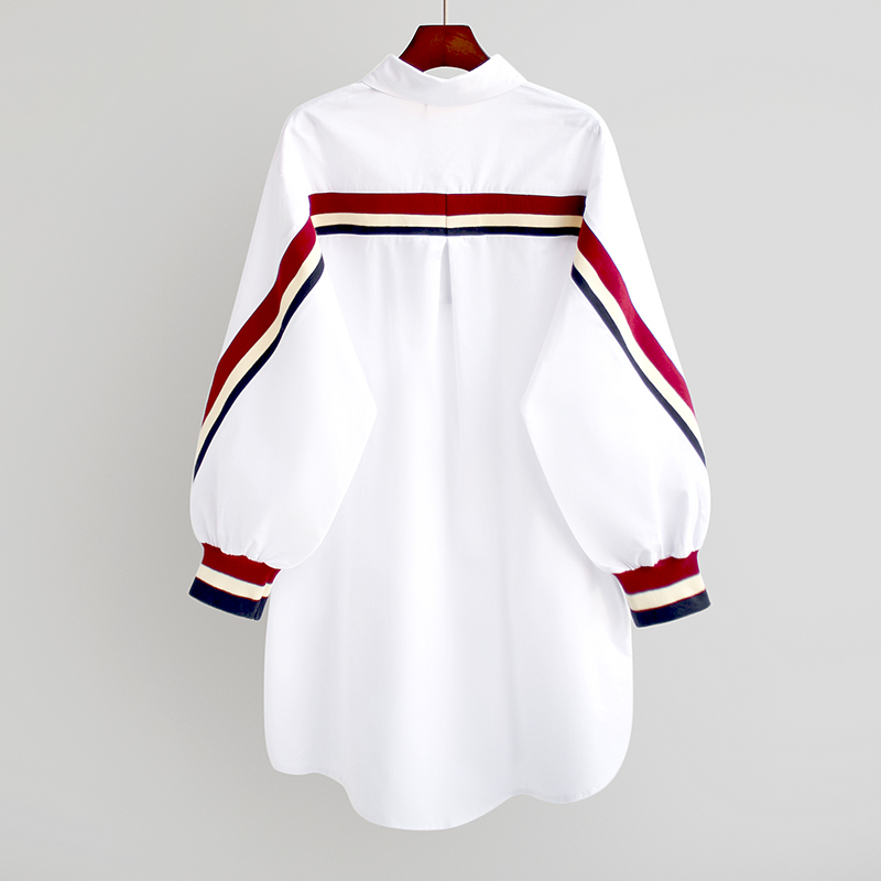 中长款设计感条纹上衣衬衫女装外套2021春季薄款宽松连衣裙潮ins热门设计联盟服务商