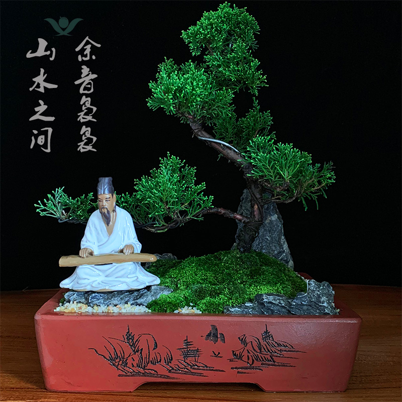茶室绿植中国风禅意苔藓微景观盆栽植物造型山石真柏盆景室内礼品热门设计联盟服务商