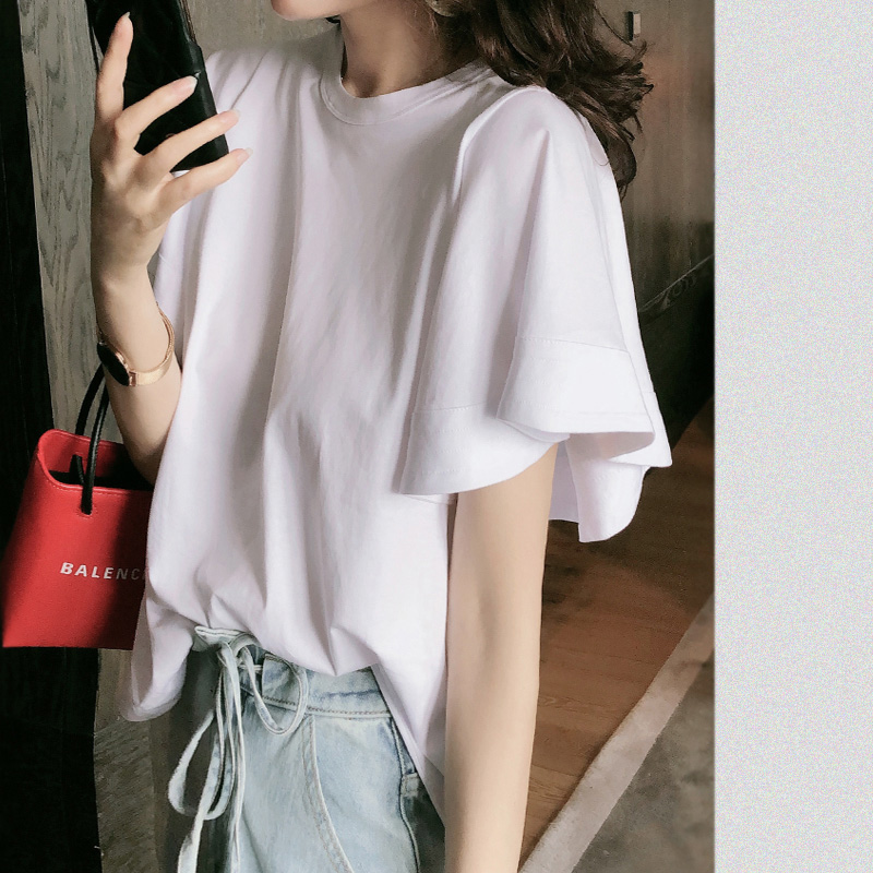 白t恤短袖女夏法式别致荷叶袖设计感小众气质半袖上衣2021年新款热门设计联盟服务商