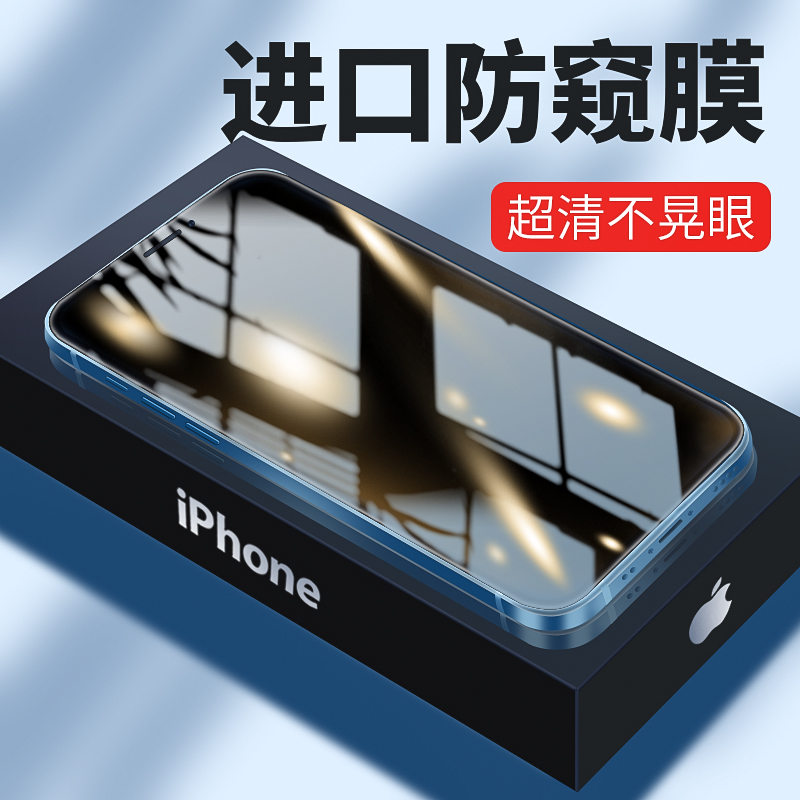 适用于iPhone13全屏覆盖防摔贴苹果11proMax高透28度防窥钢化膜12热门设计联盟服务商