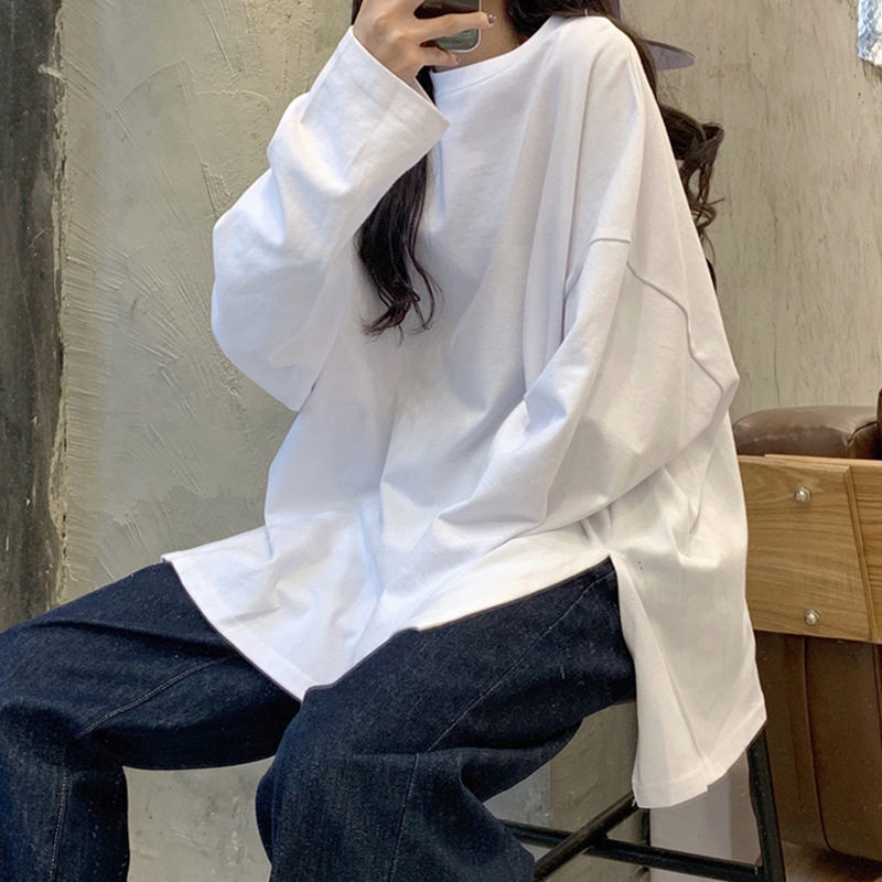 2021春季其他新款韩版宽松长袖T恤女潮开叉简约内搭圆领上衣女装热门设计联盟服务商